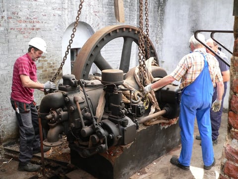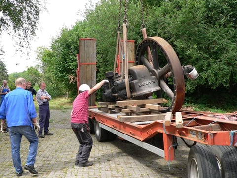 Es wurden Gespräche mit Eduard Schumacher aufgenommen und da auch ihm an einem Erhalt des Motors gelegen war, einigte man sich sehr schnell. Er überließ ihn dem Heimatverein kostenfrei unter der Bedingung, dass der Ausbau und Abtransport zeitnah geschehen musste.